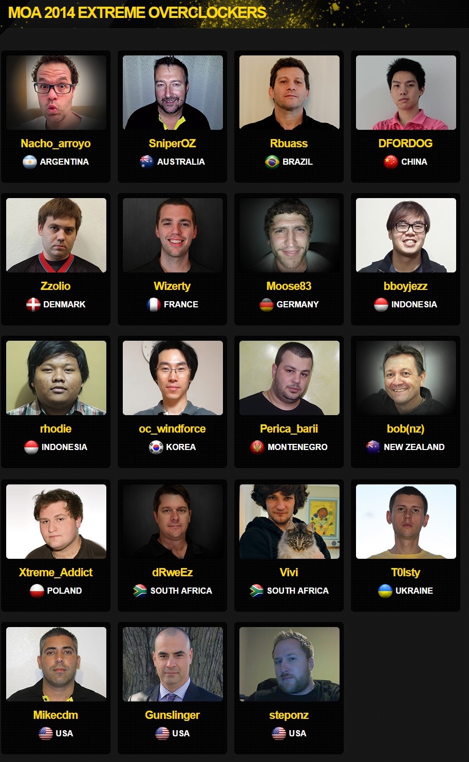Apa anda melihat ada bendera Indonesia disana? Ya, ada DUA overclocker asal Indonesia yang lolos ke babak Final MOA 2014, mereka adalah: