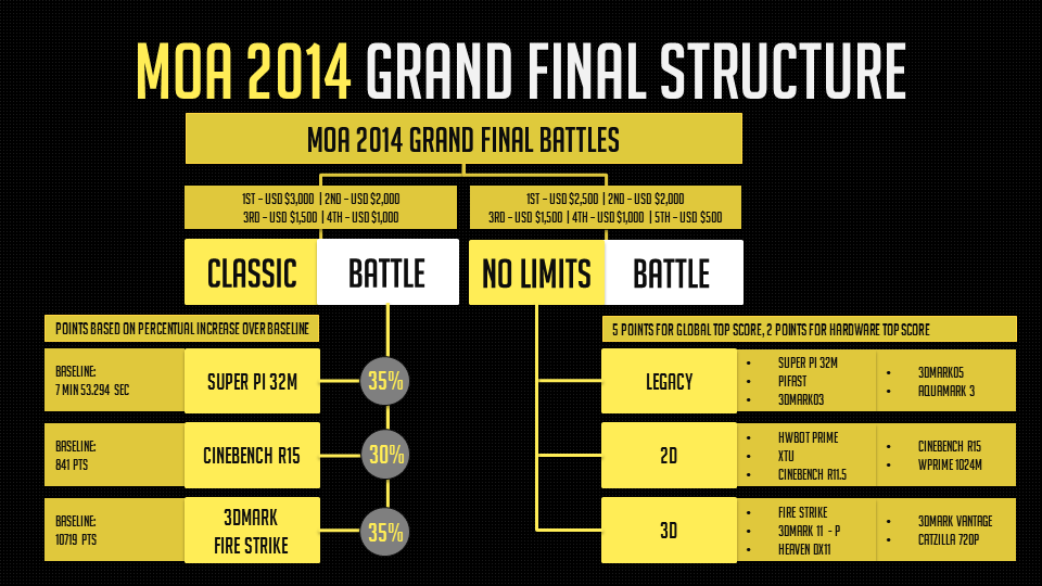 Berbeda tahun sebelumnya, terdapat 2 jenis kompetisi overclock dalam MSI MOA 2014: “Classic battle” dan juga “No limits”. Pertama, mari kita bahas dulu tentang Classic Battle: