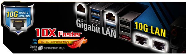 ASRock, salah satu produsen motherboard ternama dunia, memperkenalkan motherboard X99 baru mereka yang memiliki keunggulan dari sisi port Ethernet. Motherboard baru tersebut, X99 WS-E/10G, memiliki 4 buah port Ethernet dengan dua di antaranya mengusung standar 10G BASE-T dan dua sisanya menggunakan standar Gigabit Ethernet. Dengan menggunakan fitur “Teaming”, pengguna bisa merasakan kecepatan hingga 22 Gbps dengan memanfaatkan semua port Ethernet di motherboard tersebut!