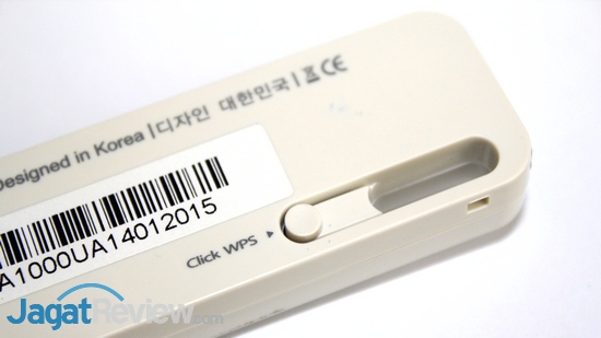 Terdapat sebuah tombol di sisi belakang dari USB Wireless Adapter ini, yaitu tombol untuk Wireless Protected Setup (WPS). Walaupun terdapat di sisi belakang, bukan berarti pengguna akan kesulitan menekan tombol tersebut. TotoLink memposisikan tombol WPS tersebut dekat dengan lubang aksesoris yang terdapat di bodi perangkat, sehingga memudahkan pengguna mencari lokasi tombol tersebut.