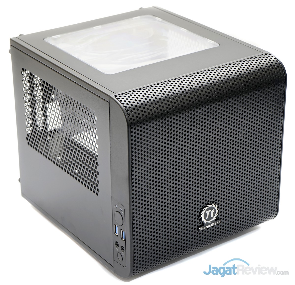 Kemasan dari paket penjualan Thermaltake Core V1Core V1Bagian depan dari Core V1, dipenuhi dengan lubang udara berukuran kecil