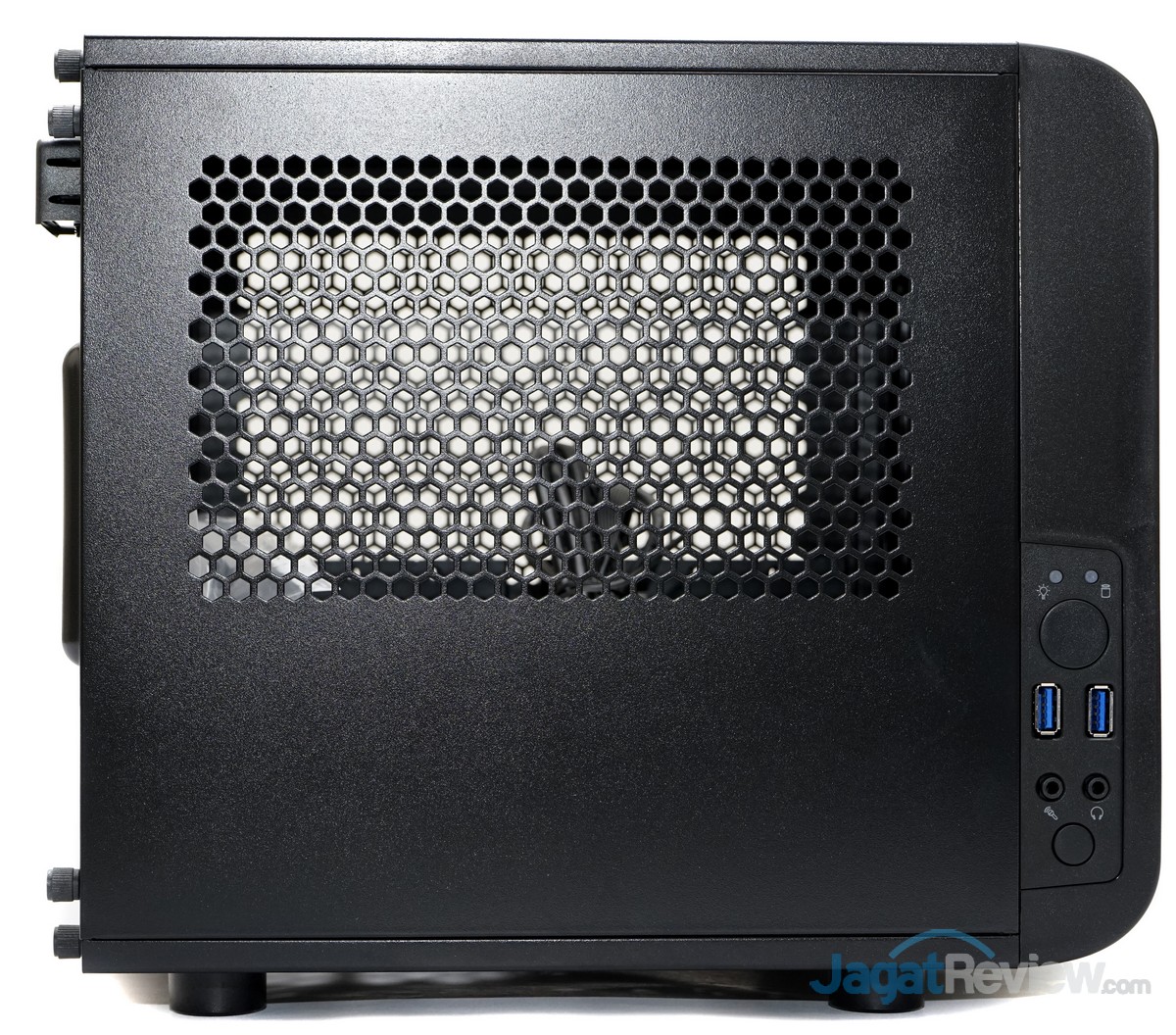 Bagian depan casing ini menggunakan bezel full-aluminium mesh yang akan berfungsi seluruhnya sebagai ventilasi udara. Bezel full-aluminium mesh ini juga dilengkapi dengan filter anti-debu.