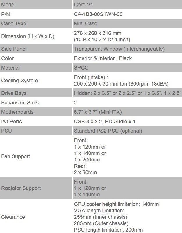 Berikut spesifikasi singkat dari casing Thermaltake Core V1: