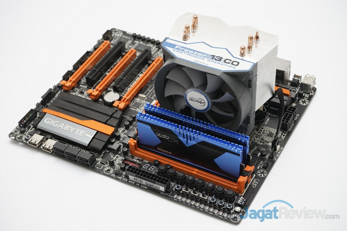 Pemasangan heatsink Freezer 13 CO ini cukup mudah dan dapat dilakukan dari sisi depan motherboard saja. Setelah selesai memasang HSF ke tempatnya, jangan lupa untuk memasang kembali kipas yang telah disediakan.