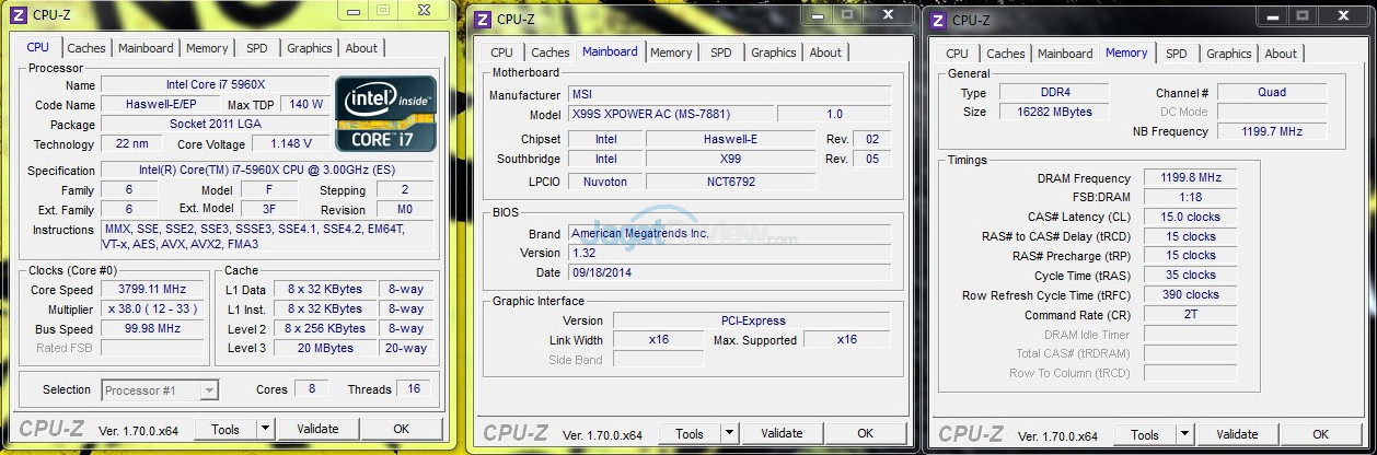 - CPU: Intel Core i7-5960X ‘Haswell-E’ LGA2011v3