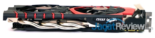 Walaupun telah menggunakan pendingin non-reference, MSI tetap menjaga form factor dari graphics card-nya. Terlihat ketebalan VGA tersebut sangat “ramah” dengan dua slot saja, sehingga memudahkan Anda untuk melakukan konfigurasi multi-GPU. Sedangkan untuk panjangnya sendiri sedikit membengkak dari ukuran standar GeForce GTX 960.