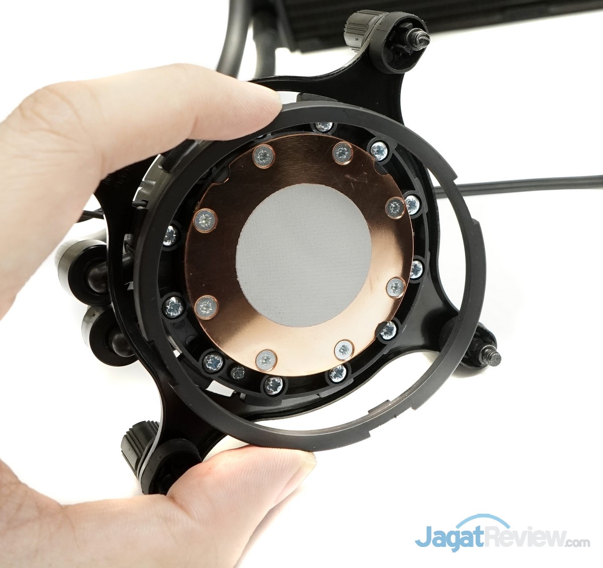 Setelah bracket telah terpasang dengan baik ke waterblock, Water 3.0 Ultimate dapat dipasang ke sistem Anda. Berikut ini adalah langkah yang kami lakukan ketika memasang watercooling AIO tersebut ke sistem.