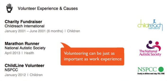 Beberapa perekrut sangat mempertimbangkan pengalaman kerja informal dibandingkan kerja formal. Masukan pengalaman anda berorganisasi atau bekerja sebagai sukarelawan pada profil LinkedIn anda. Pengalaman organisasi dan sukarelawan akan memberikan gambaran hubungan sosial anda.