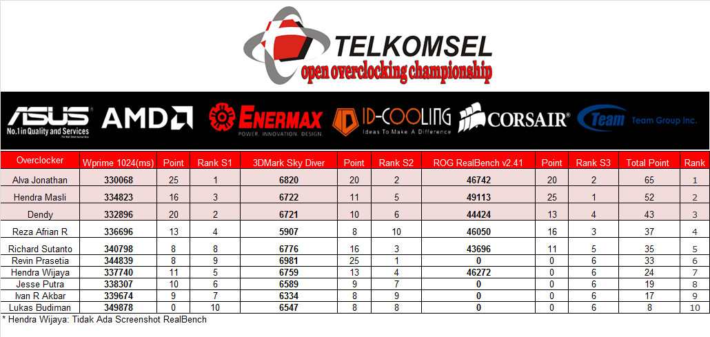 Hendra Wijaya mengalami nasib cukup naas, dimana sistemnya sudah mencatatkan skor 46272, namun screenshot gagal dilakukan karena sistem crash pada pengambilan screenshot, dan waktu benchmark sudah habis.