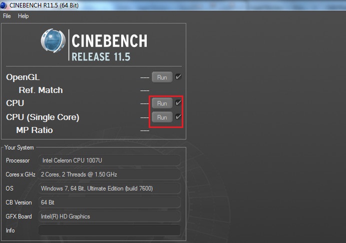 Software Cinebench R11.5 akan mensimulasikan sebuah pekerjaan rendering scene 3D, dan merupakan benchmark yang baik untuk prosesor(CPU), sebaliknya, software 3DMark adalah sebuah software bencmark popular untuk mengukur kinerja kartu grafis. DI pengujian ini, kami menggunakan sebuah pengujian yang mensimulasikan performa sebuah VGA pada API DirectX 10, yakni 3DMark Cloud Gate.