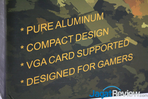 Dengan dua hal tersebut, casing ini mengijinkan penggunanya untuk menggunakan CPU Cooler yang agak besar(tower), dan juga kartu grafis dengan spesifikasi menengah ke atas. Case ini juga menggunakan bahan full-aluminium, yang umumnya cukup kokoh. Mari lihat kemasan dan Paket Penjualan casing ini lebih dekat :