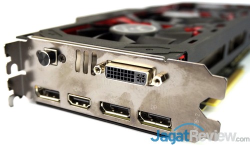 Terdapat tombol menarik di belakang graphics card ini. Tombol tersebut adalah tombol untuk melakukan overclock secara instant, layaknya pada motherboard, dengan cara mengubah profil Normal ke OC. Anda cukup menekan tombol tersebut dan voila, graphics card tersebut berjalan kencang pada kondisi profil OC!