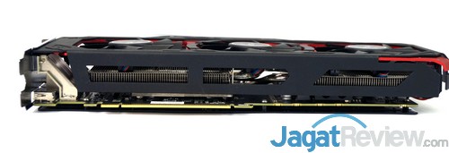 Graphics card ini memiliki body yang tergolong tebal. Ketebalan tersebut membuatnya memakan 2.5 slot PCIe, sehingga jika Anda menginginkan konfigurasi SLI dengan graphics card tersebut, pastikan motherboard Anda memiliki jarak slot PCIe yang cukup dan casing Anda cukup besar untuk mengakomodasi dua card ini.