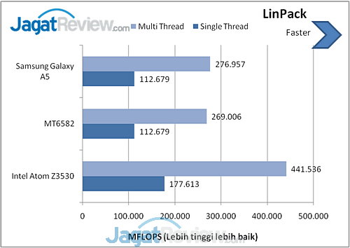 LinPack merupakan benchmark untuk CPU yang digunakan untuk mengukur seberapa cepat perangkat Android Anda. Hasilnya dalam bentuk MFLOPS(Million Floating Point Per Second). Semakin tinggi nilainya, semakin bagus.
