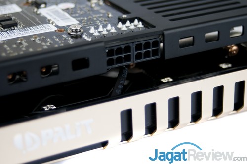 Suplai daya melalui slot PCIe yang dikombinasikan dengan dua konektor daya PCIe 6-pin memungkinkan graphics card menerima asupan daya mencapai 225 Watt.