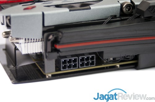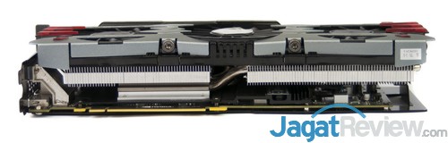 Pada sisi samping graphics card dapat ditemukan sebuah kipas mungil berdiameter 50 mm. Di balik kipas tersebut merupakan area perluasan dari heatsink pada komponen VRM graphics card. Untuk menghubungkan heatsink pada komponen VRM dan heatsink pada sisi samping graphics card digunakan sebuah heatpipe dengan diameter 8 mm.