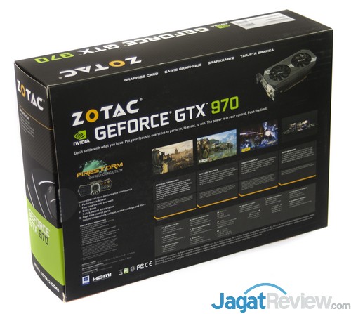 ZOTAC GTX 970 memberikan perlengkapan tergolong sederhana dengan memberikan sejumlah buku manual, DVD/CD berisi driver dan utility, DVI to D-Sub, dan dua buah konverter kabel daya molex to 6-pin.