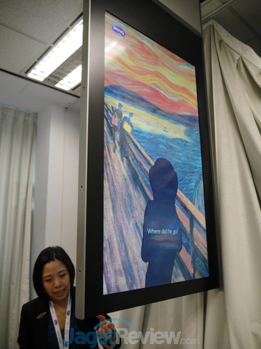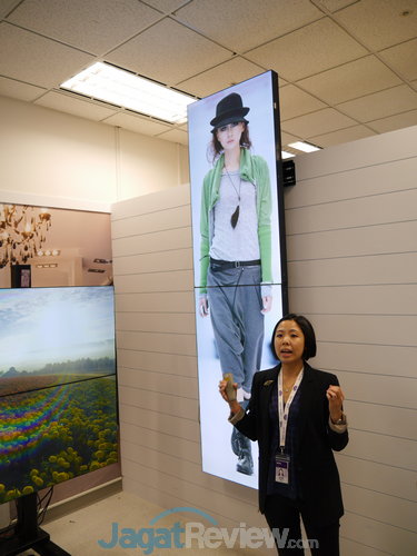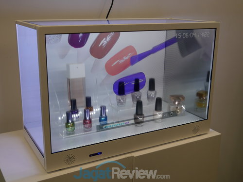 Transparent Display menjadi salah satu produk yang cukup menawan. Pasalnya, display ini terlihat tembus pandang sehingga user bisa memajang barang dagangan mereka sekaligus menarik perhatian para pembeli dengan video yang mereka tayangkan di display tembus pandang tersebut.