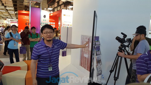 Transparent Dispay juga menjadi andalan BenQ di booth mereka tahun ini. Dengan layar tembus pandang tersebut, user bisa memutar video atau gambar sesuai dengan keinginan mereka, sekaligus memajang barang dagangannya.