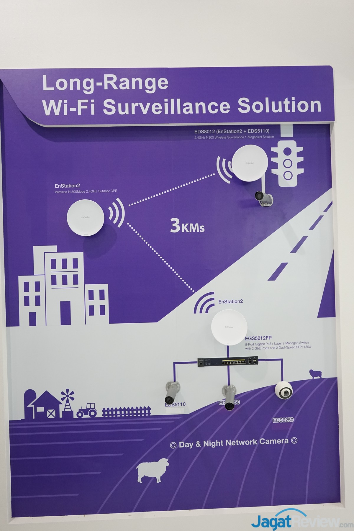 Di dalam booth ini, EnGenius juga memamerkan kombinasi produk CCTV dengan produk jaringan miliknya yang dikhususkan untuk kalangan professional. Produk ini dapat membantu perusahaan yang membutuhkan sistem pemantauan jarak jauh. Berdasarkan informasi dari EnGenius, kamera CCTV dari jarak 3 km dapat dipantau dengan mudah melalui kombinasi perangkat mereka.