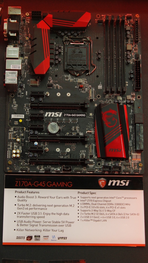 Seperti beberapa produsen hardware lain, MSI juga menampilkan beberapa motherboard mereka yang disiapkan untuk soket LGA 1151 yang akan digunakan prosesor Intel dari generasi yang akan datang. Terdapat beberapa motherboard LGA 1151, dengan chipset B150, H170, dan Z70 yang menampakkan diri di booth di 4F TWTC Nangang tersebut. Inilah dia motherboard LGA 1151 dari MSI: