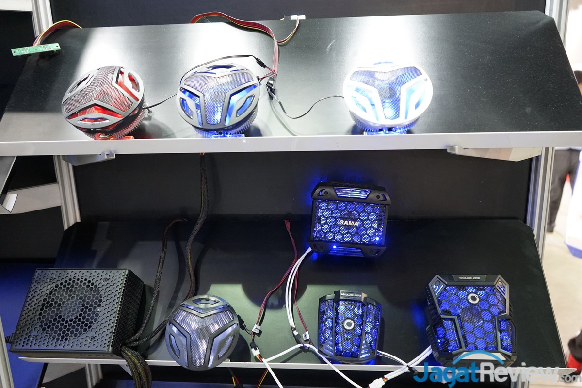Pada bagian booth ini, kami melihat sebuah casing yang bentuknya sangat familiar di pasar PC rakitan Indonesia, yakni casing SAMA MA08 yang dikenal dengan nama Dazumba DE230 di pasar PC rakitan Indonesia.