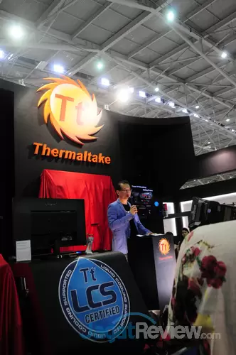 Di acara ini pula Thermaltake menunjukkan hasil kolaborasi mereka dengan ASUS. Sebuah PC yang dipaparkan disebuah dengan pendingin watercooling custom.