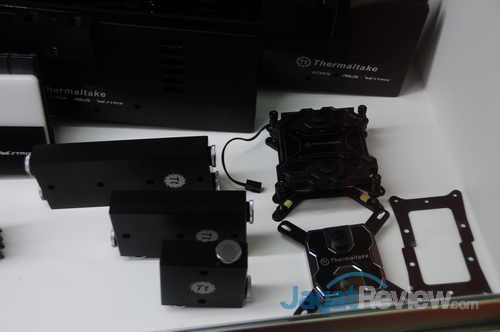 Selain Memory, Thermaltake juga memproduksi Waterblock untuk graphics card. Untuk komponen yang satu ini, Thermaltake bekerjasama dengan ASUS untuk merancang pendingin khusus NVIDIA GTX 980 Ti.