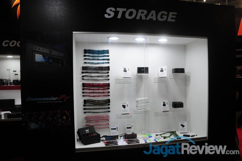 Bagian storage terletak disebelah bagian watercooling. Display ini bertujuan memberikan pengunjung overview mengenai produk Thermaltake yang berkaitan topik Storage. Apakah hubungan Thermaltake dengan produk storage? Silahkan lanjut membaca!
