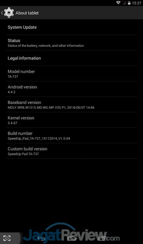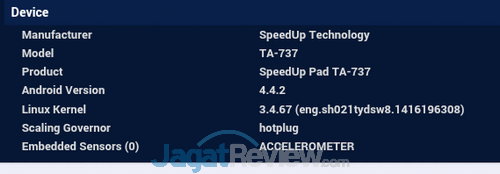 SpeedUp mempercayakan OS kepada Android 4.4.2 KitKat. Tidak ada yang spesial dari sisi UI. Pengguna akan menemukan empat buah tombol virtual di bagian bawah layar yang berfungsi sebagai Back, Home, Recent Apps, dan tombol untuk screenshot.
