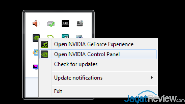DSR juga cukup mudah diaktifkan, pertama klik kanan pada destkop ataupun di logo dekat jam bagian bawah seperti pada gambar dan pilih NVIDIA Control Panel.