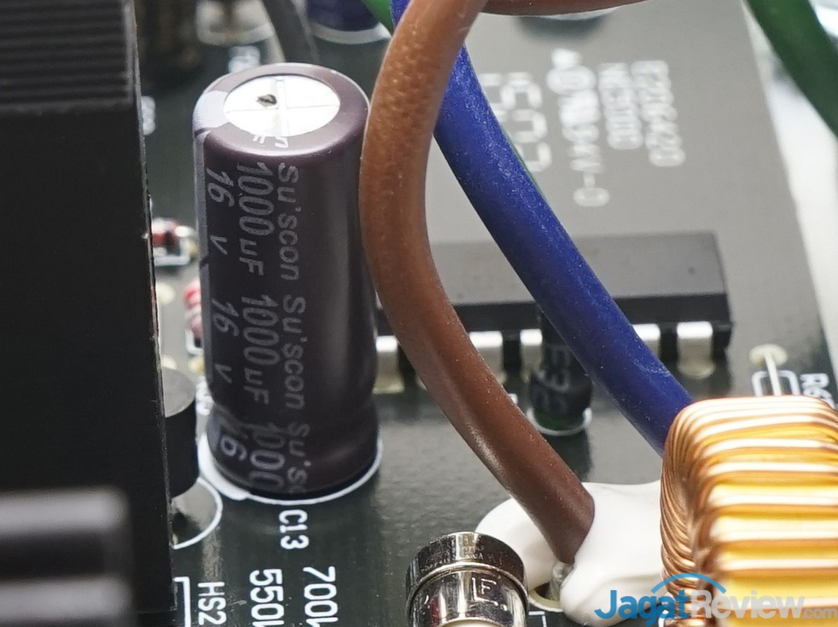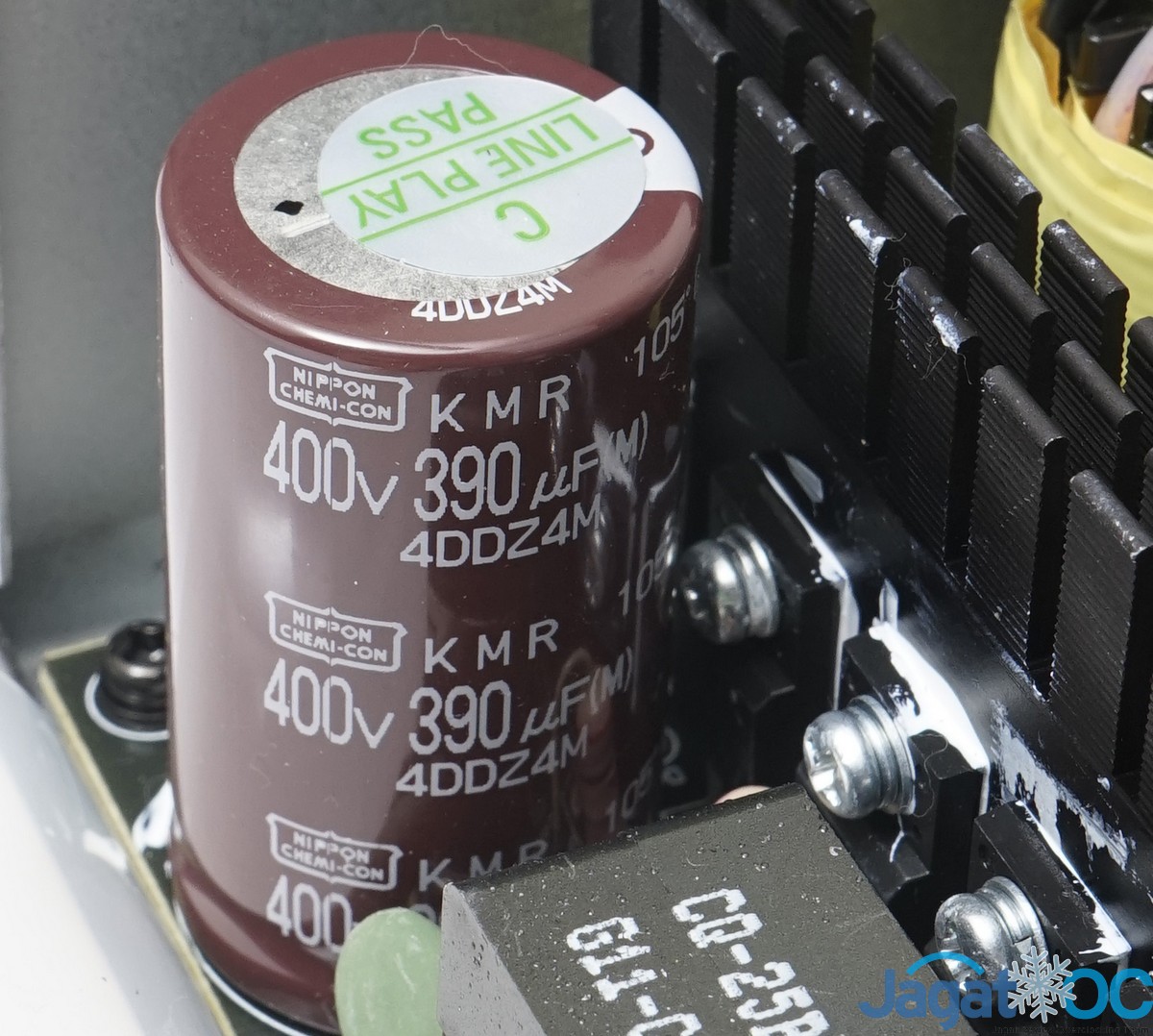 Enermax melengkapi PSU ini dengan kapasitor buatan jepang sebagai kapasitor filter pada rangkaian filter listrik input 220 Volt PSU ini.