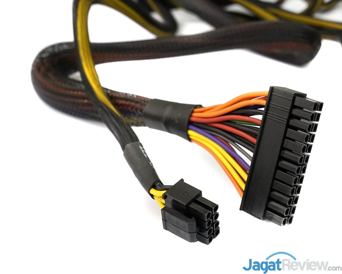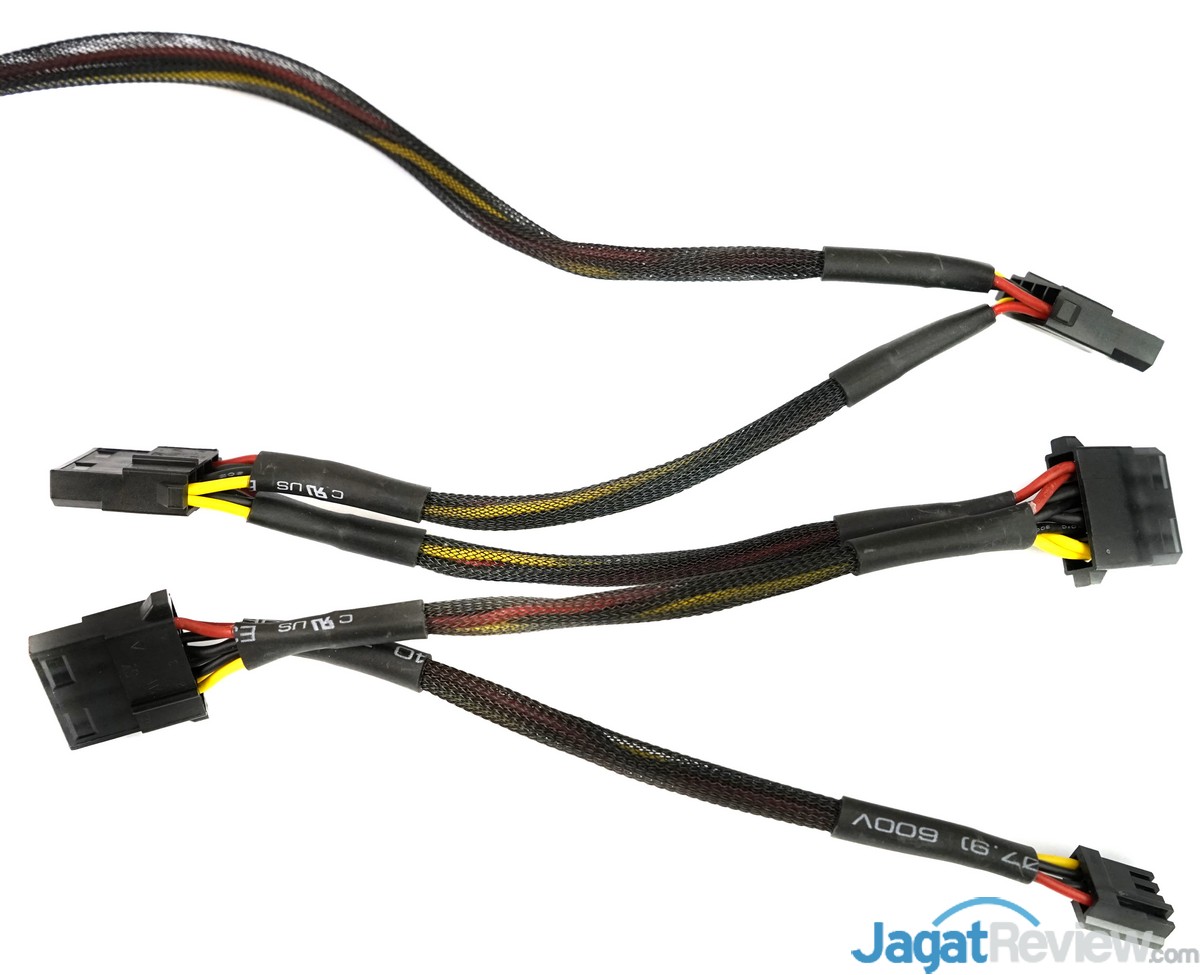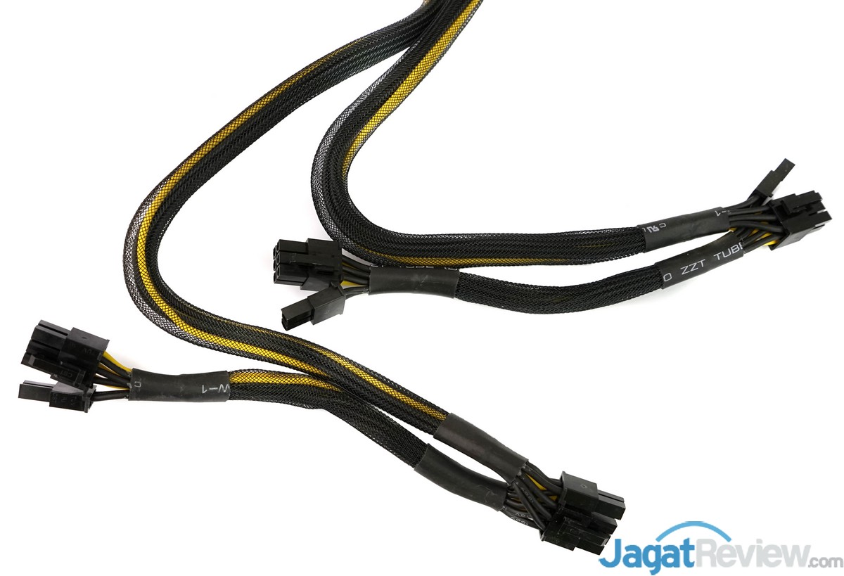 PSU ini juga hanya dilengkapi dengan 2 unit kabel power PCIe yang masing-masing memiliki 2 unit konektor power PCIe 6+2 pin .