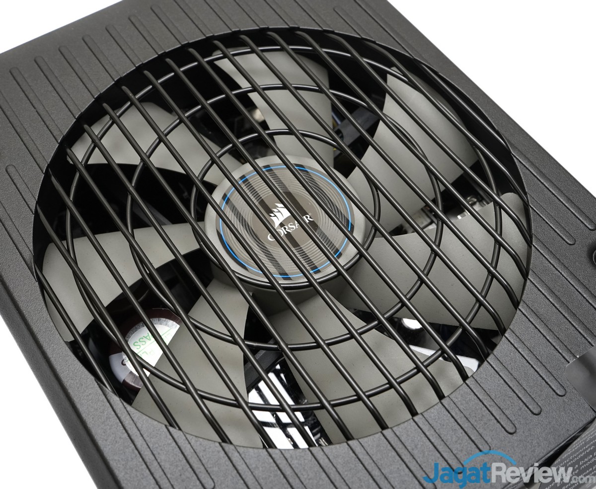Untuk sistem pendinginannya, PSU Corsair RM850i ini dilengkapi dengan sebuah fan pendingin berukuran 140mm. Berdasarkan spesifikasi PSU ini, fan pendingin ini hanya akan berputar pada saat PSU RM850i mendapatkan beban daya sebesar 340 watt ke atas.
