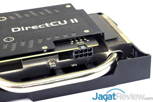 Radeon R9 380 dari ASUS ini menggunakan konektor 8-pin untuk asupan dayanya. Hal ini berbeda dengan versi reference menggunakan 6-pin+6-pin.
