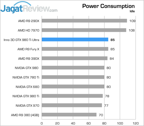 Sebagai imbas dari tidak adanya mode untuk menghentikan kipas, noise yang dihasilkan graphics card ini saat idle bisa dikatakan cukup tinggi. Namun, berbanding terbalik dengan garangnys pendingin ini serta jumlah kipas yang mencapai 4 buah, saat full load, graphics card ini justru tidak menghasilkan noise tinggi. Hal itu disebabkan karena kipas hanya berputar di kisaran 44% untuk mendapatkan suhu operasi yang terbilang rendah saat full load.