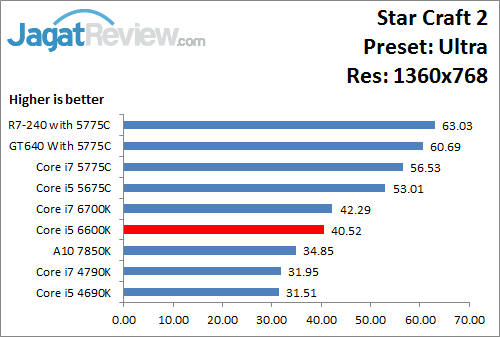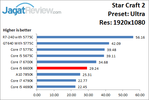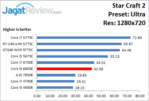 Pada game bergenre Real Time Strategy ini, Intel HD 530 pada Core i5 6600K juga tampil dominan dari Intel HD 4600 yang terdapat di prosesor Core i7 4790K dan Core i5 4690K hampir di seluruh seting pengujian dengan perbedaan performa 20%. Dan lagi-lagi GPU prosesor ini mampu mengalahkan Radeon R7 pada AMD APU A10 7850K. Sedangkan saat dibandingkan dengan Intel HD 530 pada Core i7 6700K, pada game ini GPU terintegrasi prosesor ini kalah dengan selisih 10-20%. Untuk dapat memainkan game ini dengan nyaman, seting resolusi 1920×1080 piksel dengan detil High adalah seting yang paling kami rekomendasikan.
