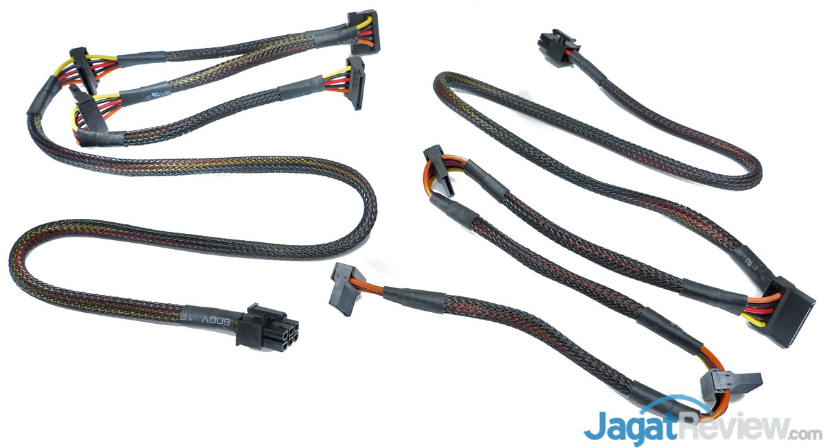 PSU Enlight “ENP-700HP” ini dilengkapi dengan 2 kabel modular PCIe power yang masing-masing memiliki 1 konektor PCIe 6+2 pin dan 1 konektor PCIe 6-pin.