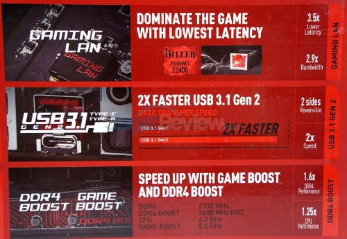 Selain mengubah penamaan seri GAMING-nya agar tak tertukar dengan produk pesaing, MSI juga memperbarui desain kemasan yang digunakan. Kali ini pada kemasannya, MSI sedikit memberikan tampilan motherboard yang ada di dalamnya, tak ada lagi logo Dragon Army besar di bagian depan kemasannya. Pada bagian belakang kemasannya, MSI juga menampilkan beberapa fitur yang diandalkan, berikut beberapa fitur tersebut: