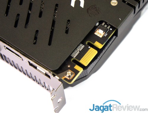 VGA card GTX 970 dari Zotac ini dilengkapi dengan satu konektor SLI. Konektor tersebut bisa dimanfaatkan untuk konfigurasi multi graphics card hingga dua buah graphics card.