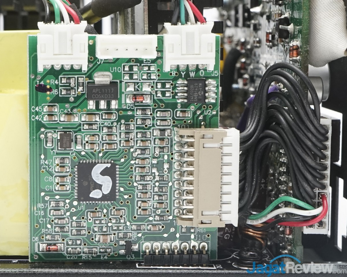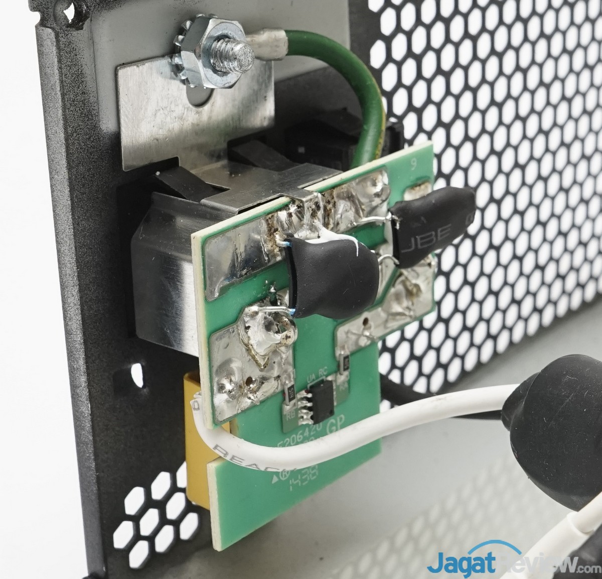 Pada bagian soket konektor power AC, Enermax memberikan rangkaian filter yang menyaring ripple listrik yang ada pada aliran listrik rumahan. Ini cukup berguna mengingat listrik di Indonesia yang cukup terkenal dengan ketidakstabilannya.