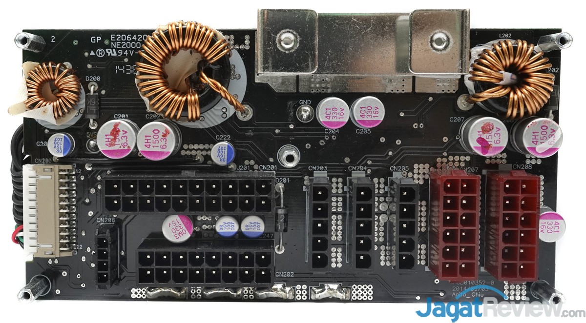 Enermax melengkapi PSU ini dengan kapasitor buatan Jepang sebagai kapasitor filter pada rangkaian filter listrik input 220 Volt PSU ini.