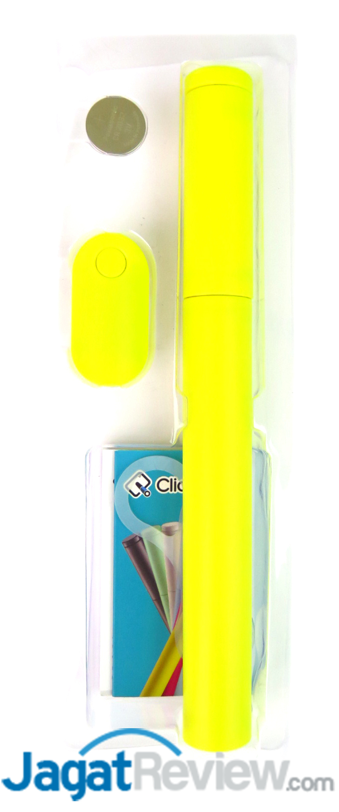 CliquefieMini Selfie Stick memiliki paket penjualan yang cukup sederhana. Di dalam box persegi panjang tersebut terdapat isi berupa selfie stick, wireless remote beserta dengan baterainya, sekaligus beberapa petunjuk penggunaan produk.
