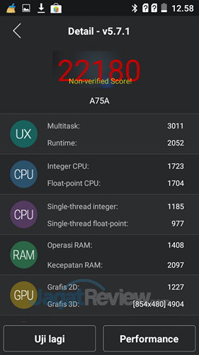 Antutu pun kami gunakan pada preview yang satu ini. Dan Evercoss Winner Y Ultra mendapatkan nilai yang tidak rendah, yaitu 22000-an! Tentunya dengan nilai tersebut, pengguna bakal dapat bermain game dengan sangat baik.