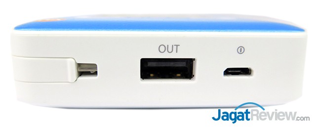 Di bagian atasnya, terdapat port output USB berdaya 5V/2A, port input microUSB berdaya sama yaitu 5V/2A, serta kabel microUSB yang sudah terhubung langsung dengan power bank dan bisa langsung digunakan jika tidak memiliki kabel USB terpisah. Sementara untuk tombol ON/OFF, berada di sisi kiri power bank yang bisa ditekan ketika hendak mengisi ulang perangkat menggunakan Samsung Animal Edition Battery Packs tersebut.