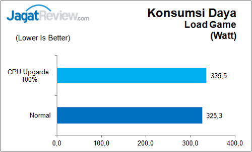 Pengukuran untuk kondisi full load dilakukan dengan membebani sistem dengan aplikasi Cinebench R11.59 dan game Lost Planet 2. Sedangkan pengukuran untuk kondisi idle dilakukan dengan membuat sistem tidak melakukan aktifitas selama sekitar 10 menit.
