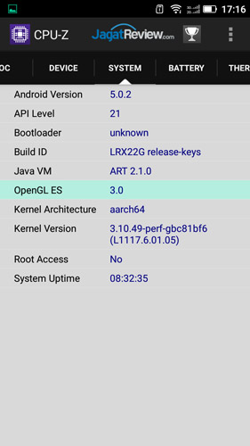 Namun yang terbaca pada pada CPU-Z menyebutkan jika perangkat ini menggunakan Snapdragon 615. Tampaknya ada ketidakakuratan pada pembacaan. Tapi jika dilihat dari clock speed yang ditampilkan, cukup jelas jika perangkat ini memang menggunakan SoC Snapdragon 415. Pureshot+ memiliki RAM 2GB serta internal memori 16 GB yang bisa anda ekspansi dengan microSD hingga 128GB.