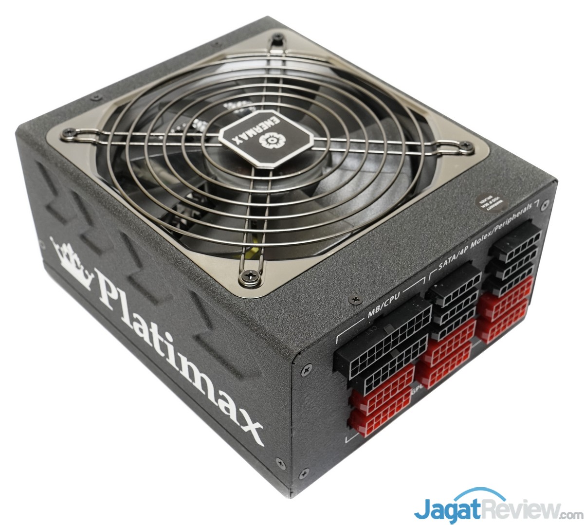 Enermax Platimax 1700 watt ini dilengkapi dengan casing yang kokoh. Seluruh fisik casing PSU ini hadir dengan tekstur kasar graphite dan pada bagian samping casing ini terdapat desain khas PSU Enermax Platimax.