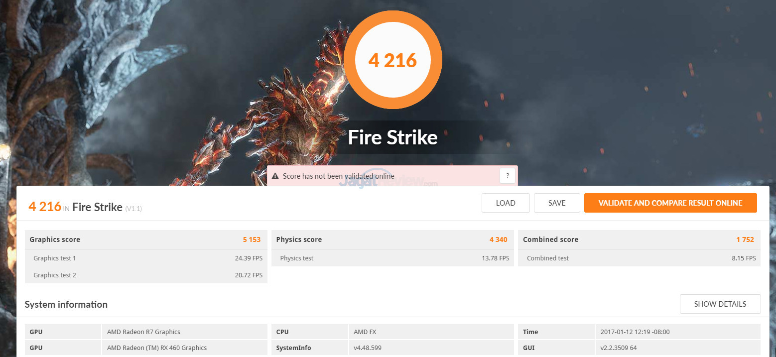 Skor 3DMark di atas menunjukkan kalau VGA RX 460 di notebook ini masih memiliki performa yang tidak terlalu jauh berbeda dibanding dengan RX 460 Desktop yang berjalan di clockspeed dan TDP serupa, serta nampaknya cukup kompetitif untuk dibandingkan dengan VGA notebook seperti GeForce GTX 960M, dan berada sedikit di bawah GTX 1050 ‘pascal’ notebook.