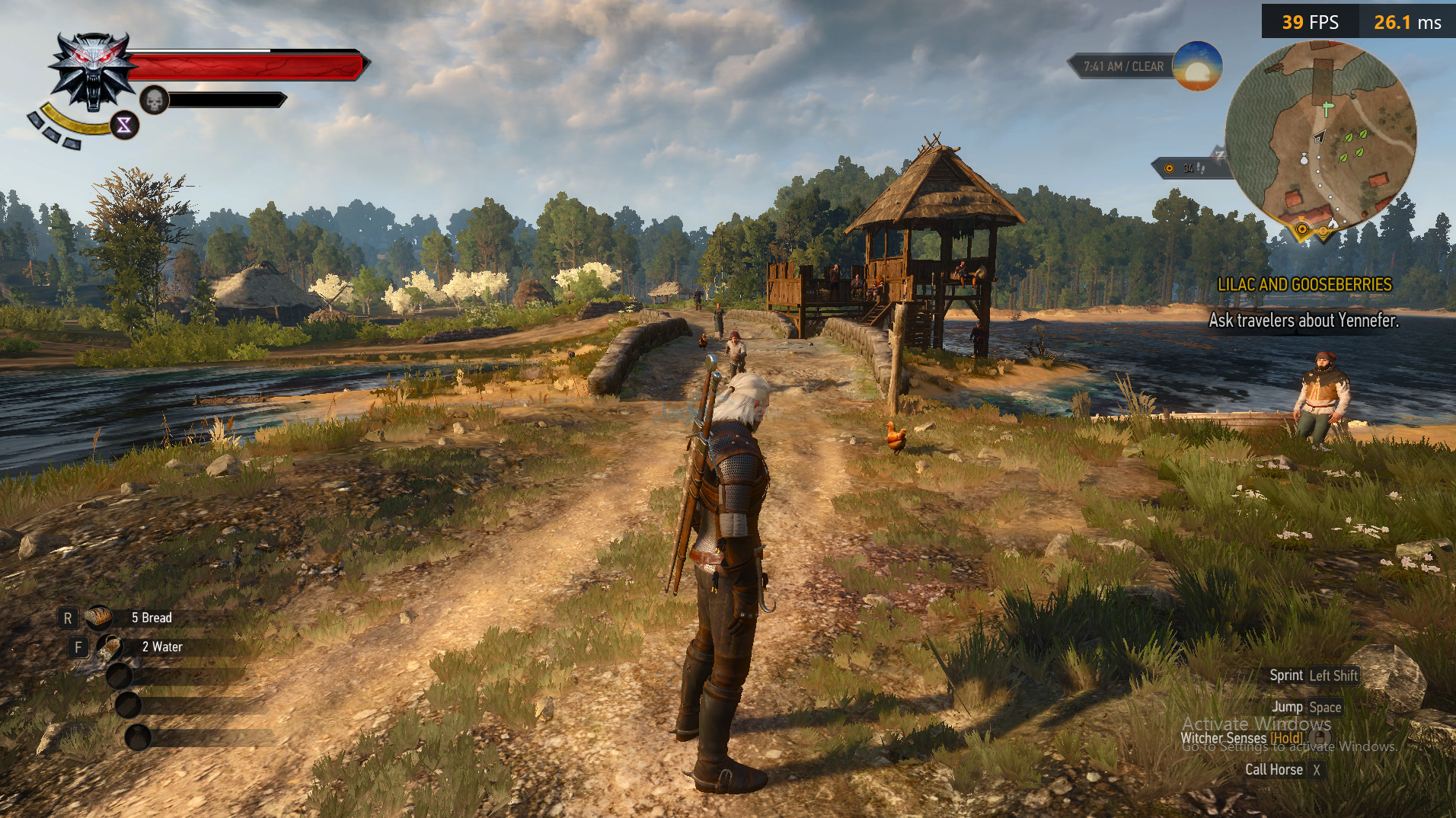 The Witcher 3: 1080p Medium Preset, Post-Processing Low – 39 to 42 FPS